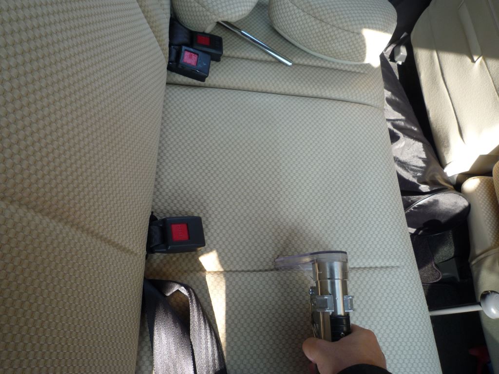 自動車のシートや内装を大量の温水で丸洗い。